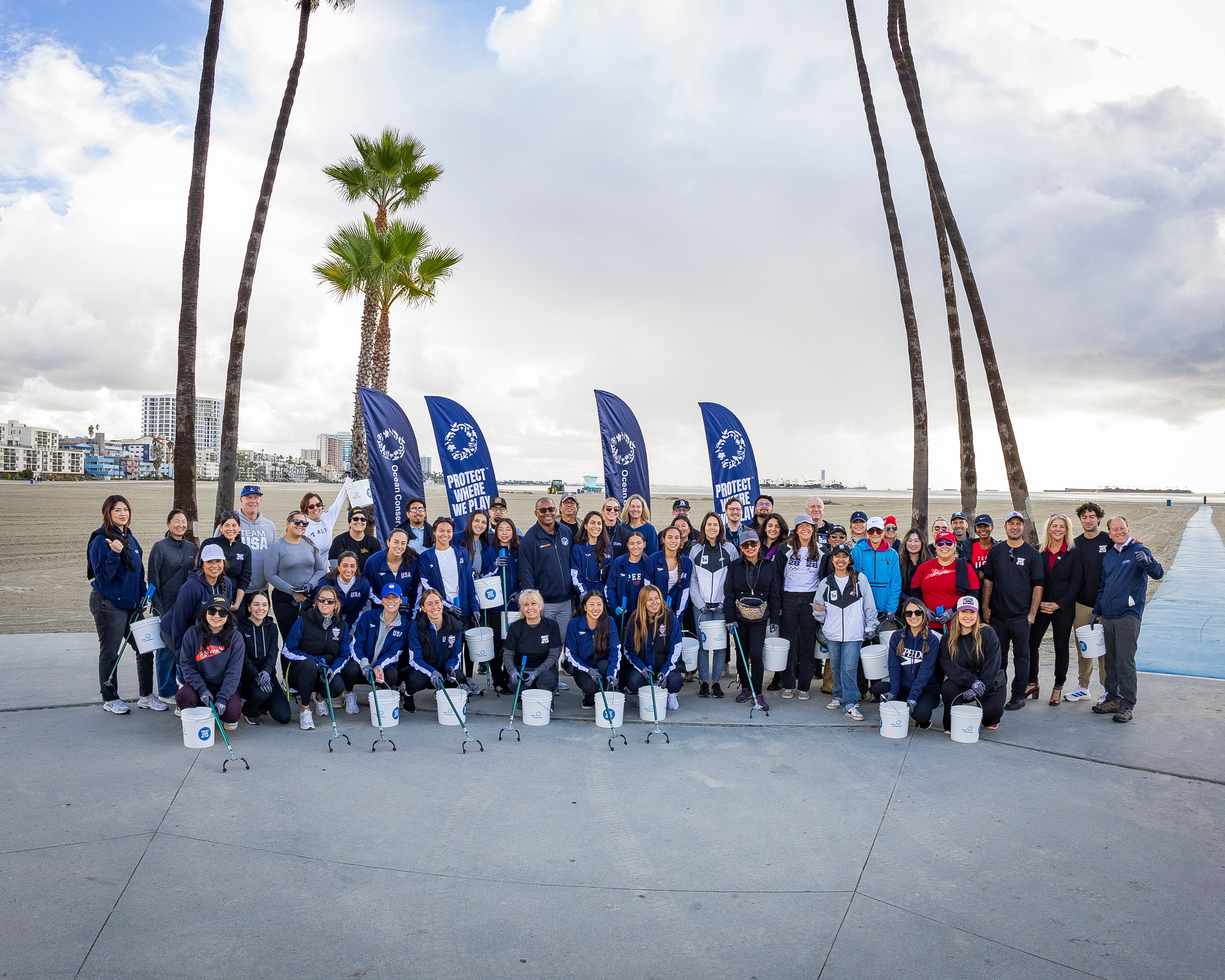 Alamitos Beach got an early dose of 2028 spirit this month as nearly 100 volunteers rolled up their sleeves for a community cleanup organized by the City of Long Beach, the Ocean Conservancy, members of the USA Artistic Swimming National Team and the U.S. Olympians and Paralympians Association.